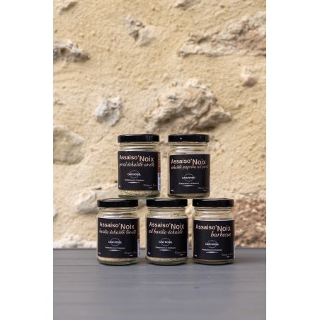 Découvrez notre gamme d’Assaiso’Noix, des poudres en pots à base de poudre de noix, dont les utilisations sont multiples : sur une salade composée, dans une marinade ou en tant qu’épices pour relever vos plats et y apporter une légère mais savoureuse touche de noix.