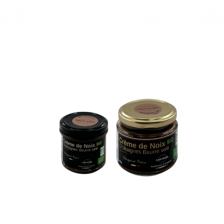 Notre crème de noix onctueuse est idéale pour tartiner au petit-déjeuner, sublimer des crêpes ou un goûter, garnir une tarte ou encore apporter une touche originale en insert dans vos créations pâtissières. Notre crème de noix "Châtaigne au beurre salé" BIO est confectionnée avec des Noix bio (25%), des châtaignes bio (25%), du sucre de Canne bio, de l'eau, du Miel bio, des extraits Naturels de Vanille bio, du beurre salé bio (3%) et du sel.