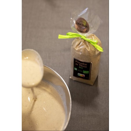 Ce produit contient 100% de poudre de noix. Cette poudre provient, en premier lieu, de la pâte de noix obtenue après extraction de l'huile, puis cette pâte est broyée et tamisée afin d'en obtenir une fine poudre. Vous pourrez les conserver jusqu'à 8 mois.