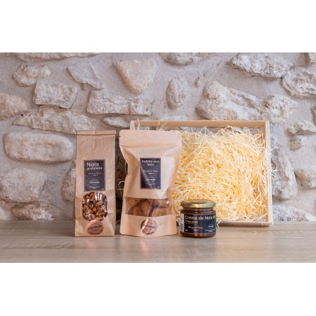 Offrez un voyage gourmand avec notre coffret cadeau artisanal, composé d’une sélection raffinée de produits aux noix. Chaque article, soigneusement élaboré à partir de noix de qualité, reflète le savoir-faire traditionnel et la richesse des saveurs authentiques. Idéal pour surprendre et ravir les amateurs de gourmandises naturelles, ce coffret incarne l’art de la dégustation conviviale et raffinée. Composé de 3 produits sucrés : Sablés aux noix 130g, Noix pralinées 200g, Crème de noix chocolat Bio 200g
