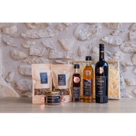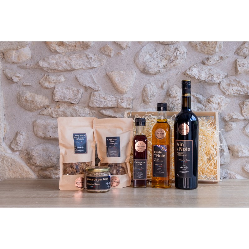 Offrez un voyage gourmand avec notre coffret cadeau artisanal, composé d’une sélection raffinée de produits aux noix. Chaque article, soigneusement élaboré à partir de noix de qualité, reflète le savoir-faire traditionnel et la richesse des saveurs authentiques. Idéal pour surprendre et ravir les amateurs de gourmandises naturelles, ce coffret incarne l’art de la dégustation conviviale et raffinée. Composé de 6 produits salés : vin & noix 37,5cl, Huile de noix vierge traditionnelle 50cl, moutarde aux noix 200g, vinaigre de noix 25cl, Crackers gruyère tonka 150g, croquant apéritif 100g