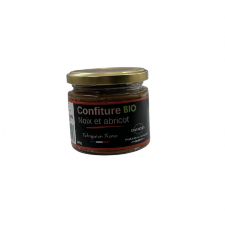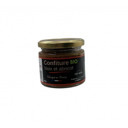 Notre confiture de noix et abricots est fabriquée avec des noix bio, du sucre bio, des abricots frais bio.