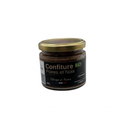 Notre confiture de noix et poires est fabriquée avec des noix bio, du sucre bio, des poires fraiches bio.