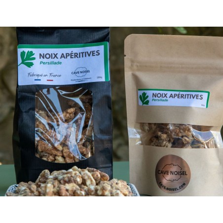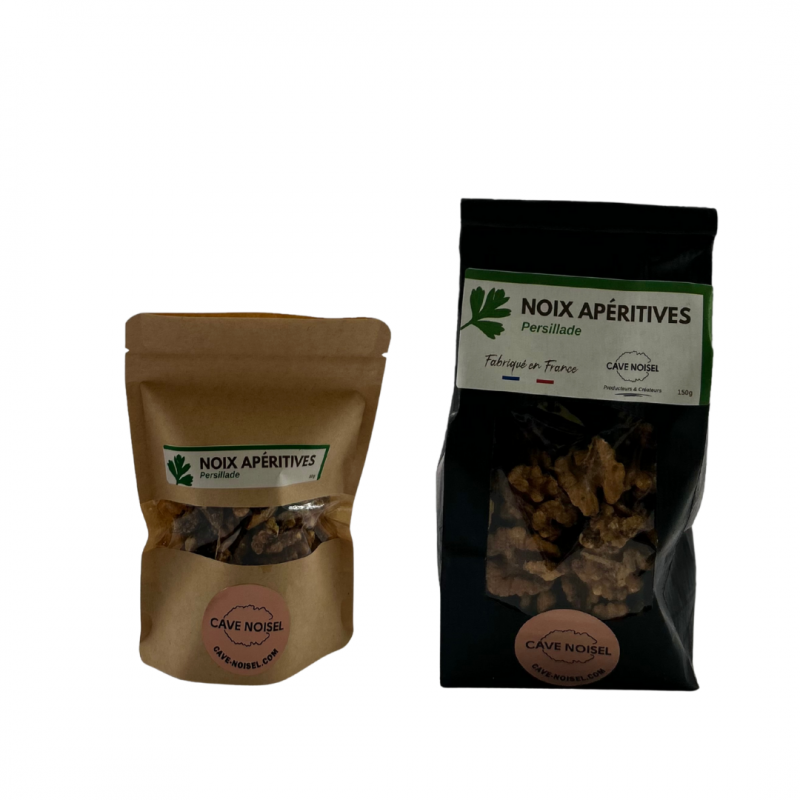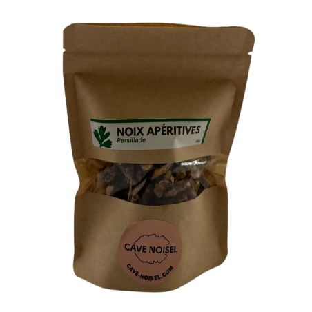 Nos noix-sel "Persillade" sont fabriquées à partir de Noix, de persillade, de sel et de blanc d’œuf.
