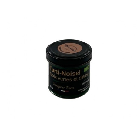 Notre Tarti-Noisel "olives verte" est certifiée Agriculture Biologique et fabriquée à partir de noix vertes Bio, d'anchois, d'olives Bio, de câpres Bio, de poivre Bio, de sel et de piment doux Bio.