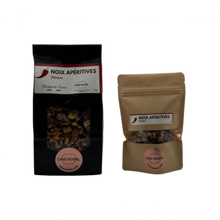 Craquez pour nos noix apéritives au piment, une recette savoureuse qui allie le croquant naturel de la noix au piquant subtile du piment. Torréfiées avec soin pour révéler toutes leurs saveurs, ces noix relevées offrent une expérience gustative originale et équilibrée. Idéales pour l’apéritif, elles se dégustent seules ou accompagnées d’un verre de vin ou d’une boisson fraîche. Une collation saine, naturelle et pleine de caractère, qui séduira les amateurs de saveurs piquantes et authentiques.. Nos noix-apéritives "Piment" sont fabriquées à partir de Noix, de piment de Cayenne, de sel et de blanc d’œuf.