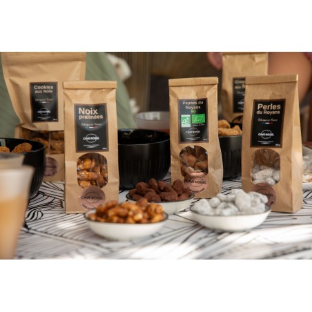 Nos noix enrobées de caramel allient le croquant naturel des noix à une douce couche de caramel fondant et légèrement croustillant. Un plaisir sucré parfaitement équilibré, idéal pour une gourmandise à tout moment de la journée. Nos noix pralinées contiennent des Noix (58%) et du sucre.